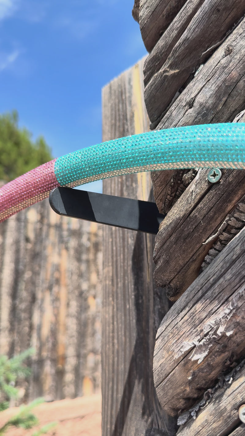 Why bother with a disco ball when you can rock this 28" OD 4-piece Trans...itions Sectional Polypro Hoop! Designed for those seeking some glitz in their tricks, this Blue Glitter and Watermelon Sugar polypro hoop is adorned with sparkling clear pink, teak, and clear glass rhinestones, ready to dazzle day or night. Get groovy with this unique performance hoop and hoop it up with flair or is it flares?! ⚧️