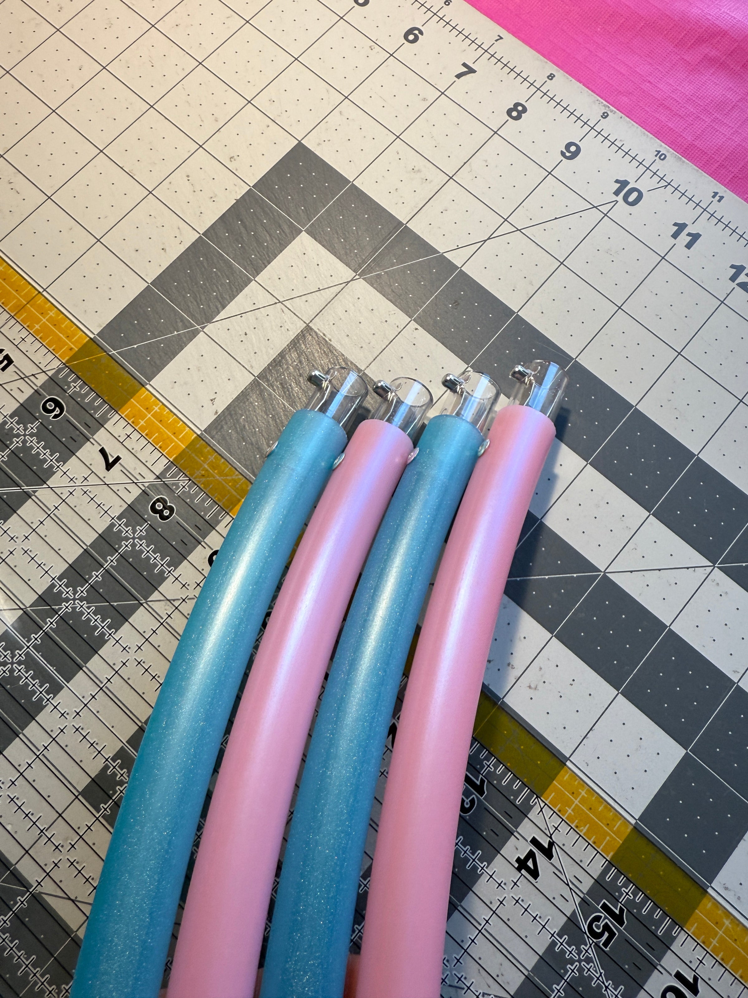 Why bother with a disco ball when you can rock this 31" OD 4-piece Trans...itions Sectional Polypro Hoop! Designed for those seeking some glitz in their tricks, this Rose Gold Stardust and Dreamin' polypro hoop is adorned with sparkling clear pink, teak, and clear glass rhinestones, ready to dazzle day or night. Get groovy with this unique performance hoop and hoop it up with flair or is it flares?! 🏳️⚧️