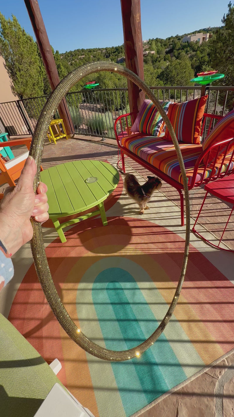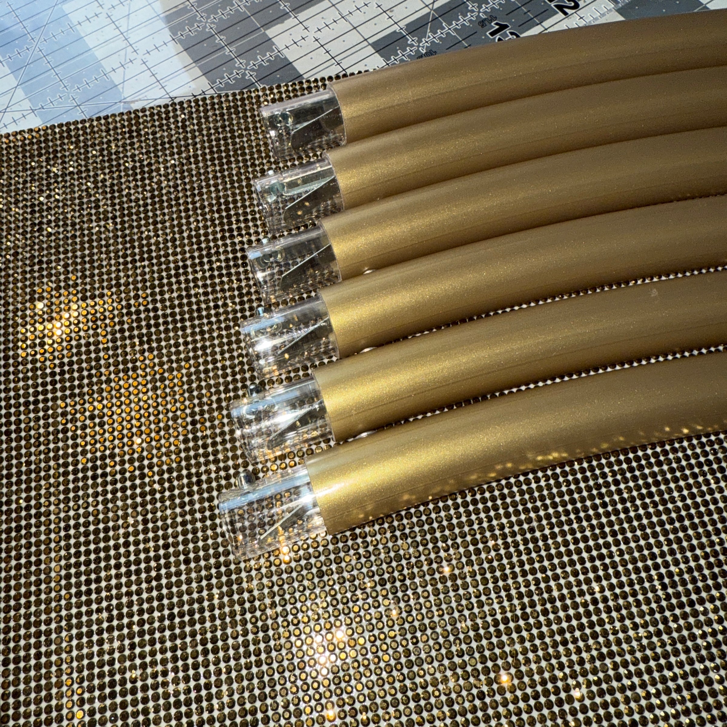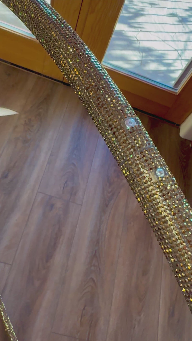 There's nothing like accessorizing with this 24 Karat 36" OD 6-piece sectional polypro hoop made with 3/4" Champagne Gold polypro tubing covered in metallic gold glass rhinestones. Perfect for those performances that you want to be dripping in 24 Karat bling!!